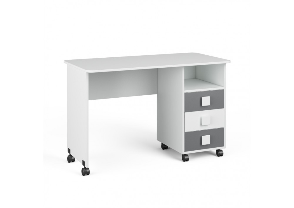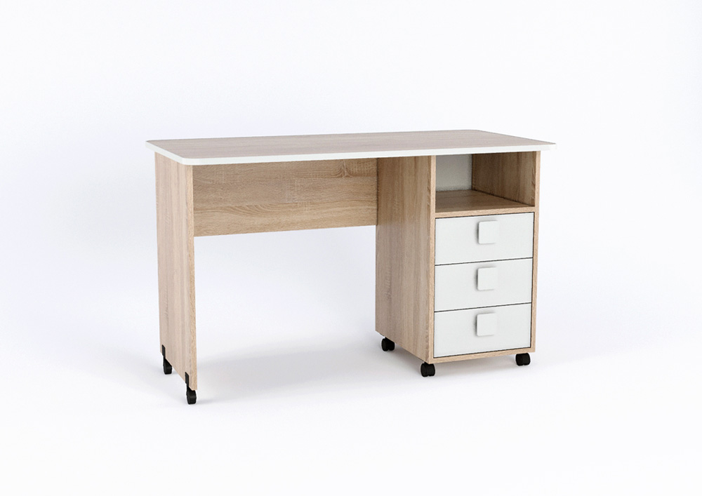 Три выкатных ящика стола обеспечат удобное хранение канцелярии,письменных,учебных и прочих принадлежностей.Над ящиками открытая полка для мелочей,которые будут всегда под рукой.